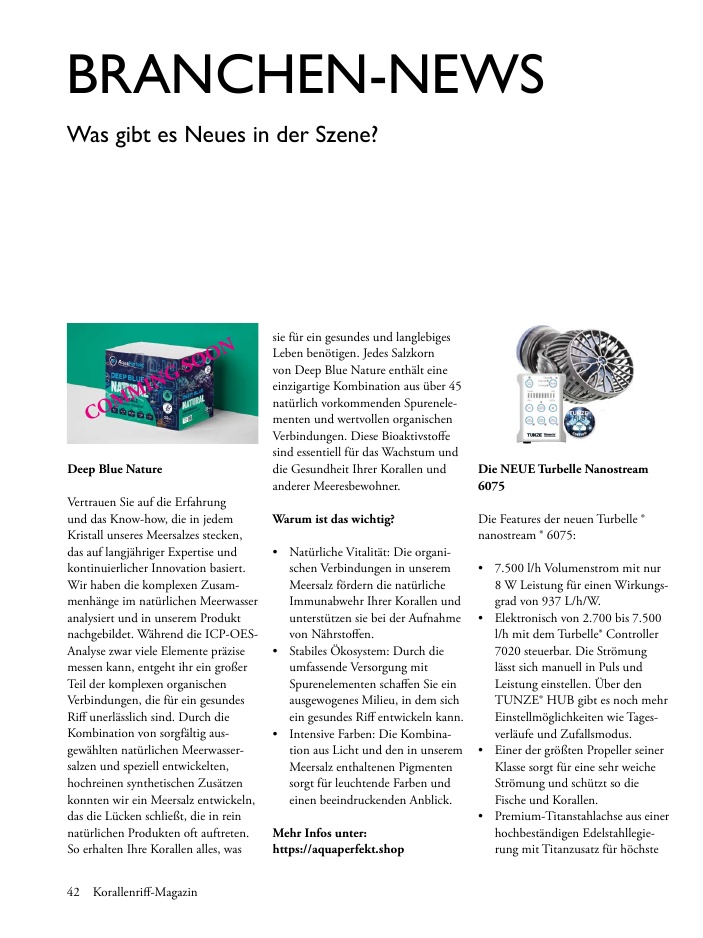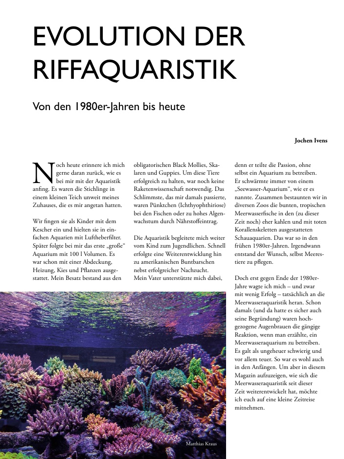 mit gesunden Tieren und einem optimal funktionierenden Equipment. Nach über 20 Jahren Erfahrung in der Meeresaquaristik hatten wir eine - wir nennen es mal Reef fantastische Idee - ein Magazin der Meeresaquaristik!
